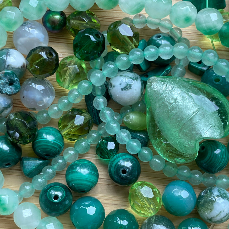 Perles en bois et Jaspe verte aux couleurs de la Turquoise Africaine
